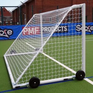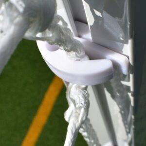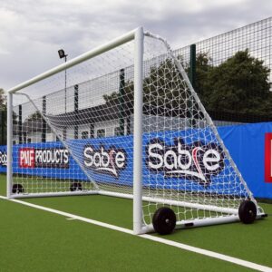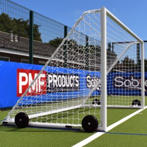 These aluminium goals are easy to maneuver when used with EasyLever wheels. The wheels can be adjusted up/down using a simple lever system that produces ample ground clearance and the tyres are puncture-proof. Included within this package deal is a 4mm white `Shape to Fit’ net that is weatherproof and shaped to fit this goal so you get a professional-looking goalpost that will last match after match.